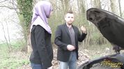 Развратная мусульманка сосет хуй незнакомцу не снимая хиджаба, после чего отдается в лесу