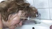 Любитель зрелых дырок трахает сексуальную бабулю, заставляя вылизать анал прямо в туалете