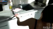 Описание:Мужик конкретно подсел на эротический профиль горячей русской чикули. Ежедневно видя скучную жену у себя дома, а на экране - страстную тёлку, он настолько ушёл в свои половые фантазии, что представил, будто бы сейчас на его кухне на месте жены находится эта русская цыпа и как раз готовит ему завтракать. А поскольку мысли о еде чувака быстро покинули, русская тёлочка отсосала его америкосовский хер и он тут же так круто пошёл натягивать её скрепную щёлочку, как будто он только что вернулся с выборов Путина!