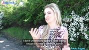 Описание:Сиськастая блондиночка приехала из Шотландии и, гуляя по ебеням, заблудилась. Встретив отзывчивого незнакомца, она очень обрадовалась, что тот готов ей помочь и даже довезти до центра города, но… чувак слегка обнаглел и предложил женщине денег за показать ему сиськи. Бабёнка оказалась не из стеснительных и тут же их ему засветила. А получив предложение сразу в 600 евро - быстренько согласилась на минет и на полноценный растрах её киски. Чувак отлично провёл времечко с этой разнузданной девкой, по итогу обкончав её сочные и красивые титьки.