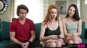 Описание:Две девчули на диванчике весело играли в картишки. Но внезапно пришёл брат одной из подружек и день заиграл новыми красками: началась игра на раздевание! Ну а после того, как у парня встал его голый хуй на обнажённую шмоньку сестрички, подружка потребовала усилить игру исполнением пошлых желаний. И как не стеснялась рыжуля, уже вскоре брат ебал её на диванчике раком, а она сосала пизду подружани. Впрочем, и брюнеточка не потерялась, тоже славно отведав залупы кучерявого парня.