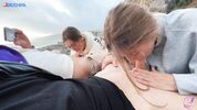 Описание:То ли этим пацанам, то ли девкам захотелось экстрима и вот теперь хуй им, а не комфортная ебля! Теперь эти два дурака и две дуры торчат на верхотуре над морем и пытаются делать вид, что им там хорошо и приятно. Девушки на ветру героически минетят озябшие пацанячьи залупы, а пацаны, погрев свои херы в тёплых девичьих глотках, мужественно принимаются драть своих тёлок, сто раз пожалев о такой ебанутой затее.