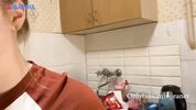 Дал в ротик двоюродной сеструле с красивыми титьками прямо на кухне