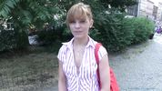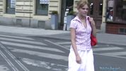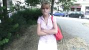 Описание:Сегодня чешский пикапер притворился работником модельного агентства и пристал на улице к беленькой мордастенькой девке. Ему повезло: девчуля рассказала, что ей 18, она не работает и раннее занималась в балетной школе. Чувак с трудом, но развёл её на показать ему растяжку-шпагат, несмотря на то, что у крошки не было на себе трусиков и она очень стеснялась. Ещё трудней было развести её на секс: на деньги она не согласилась, а вот в обмен на крутую карьеру модели стала слегка поддаваться. Хитрец и так, и так уламывал эту приличную девушку… и таки уломал, дав ей в рот и круто отдрючив в подъёзде ближайшего дома. Будет девке наука!