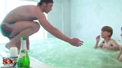 Описание:Молодые студентки подпили и залезли в бассейн голышом, не стесняясь и парня, который прилез в их компанию и просто кайфует: он лапает девок, поливает шампанским и мажет их взбитыми сливками, чтобы всё это тут же слизать. Похотливые и разгорячённые тёлки с него сами стянули трусы, насосав его член и дав парню раком, а потом и в два хуя, ведь к парнишке подтянулся друган.