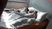 Тёлка тихо сосёт хуй и ебётся с мужем подружки, пока та спит рядышком на кровати. Анальный кремпай
