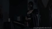 Вспухшие губки тёлки в латексе и маске принимают до предела взыбленный хуй и сперму Хозяина