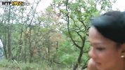 Голодная по сексу мулатка согласилась прогуляться в лес с пикапером, зная что тот ее выебет