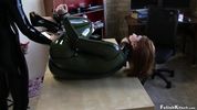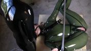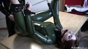 Фетишист обездвижил свою девку в латексе, чтобы, раздрочив вибратором, выебать её в распухшую пизду